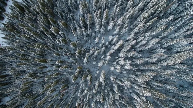 11. Заснеженный лес с воздуха