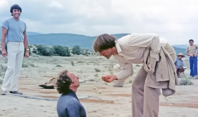 7. Во время съемок сцены с зыбучими песками, режиссер забыл сказать команду "Снято", и в итоге Ришар так и стоял, погрузившись наполовину в песок. А из-за того, что он долго простоял под палящим солнцем, его кожа на лице капитально обгорела.