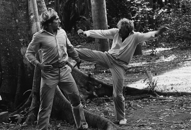 6. Изначально планировалось привлечь к съемкам реальную гориллу. Но от этой идеи быстро отказались. Это как минимум было опасно. Да и как выяснилось, гориллы не водятся в мексиканских джунглях. А таскать за собой огромного примата было бы тем еще удовольствием. Поэтому было решено использовать каскадера, одетого в костюм обезьяны.