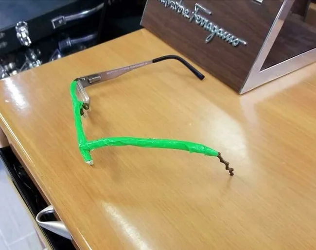 6. "Моя оправа сломалась, и я вставил линзы в оправу от солнцезащитных очков. Выгляжу нелепо, но зато могу нормально работать"