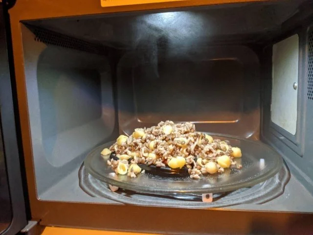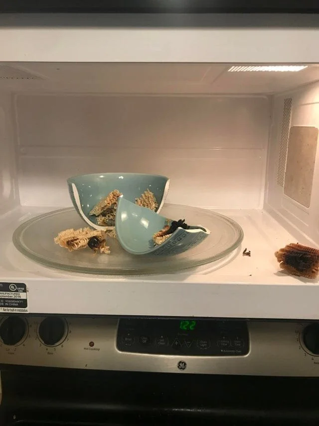 Паренек решил приготовить лапшу быстрого приготовления в микроволновке - но забыл добавить воду