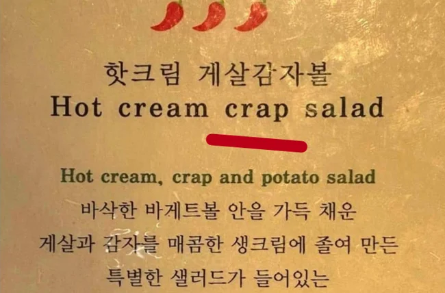 Горячий салат со сметаной и дерьмом, короче. Вероятно, имелся в виду краб. Но смех было уже не остановить.