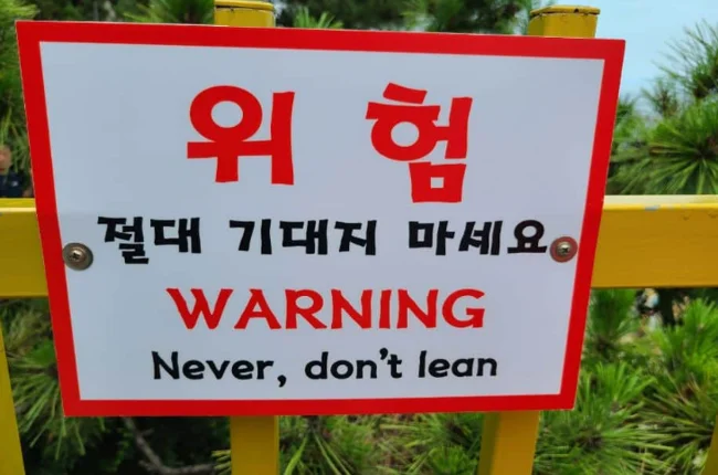 Привычное «No Smoking!» корейцы сумели превратить в «НЕТ! КУРИ!». Спасибо, если вы настаиваете, то я продолжу.
