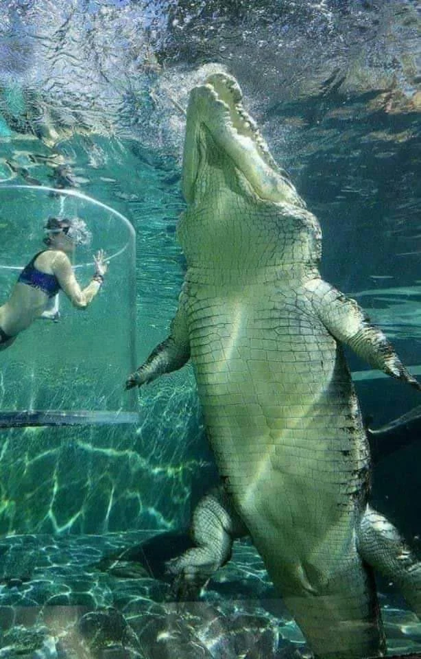 Размер взрослого австралийского гребнистого крокодила по сравнению с человеком