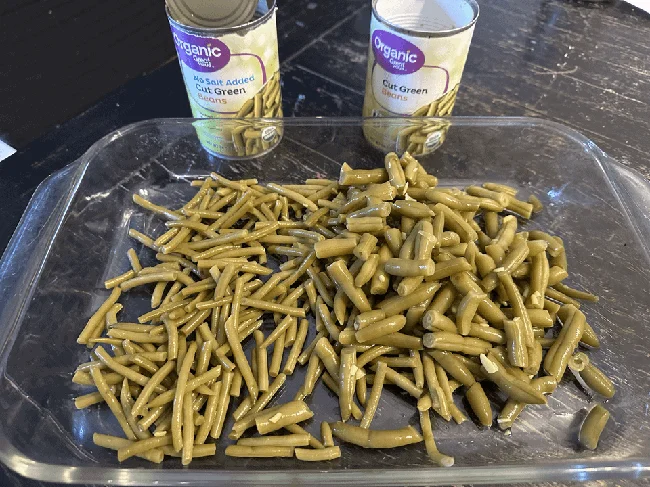 Наглядная разница в размере зелёной консервированной фасоли с солью и без её добавления. Та, что потолще — как раз с солью.