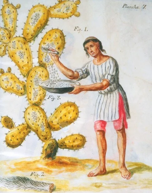 Некоторые историки считают, что ярко-красный краситель, который "изобрели" ацтеки, затем распространился и в других странах. Когда испанские конкистадоры встретили вождя ацтеков Монтесуму, они были потрясены ярким красным цветом его одеяний. Такой яркий оттенок ацтеки получали собирая, высушивая и измельчая в порошок жучков мексиканской кошенили (вид насекомых рода Dactylopius). Красный краситель быстро стал популярным и распространился по Священной Римской империи, где им окрашивали военные мундиры, а затем по Великобритании, где красили одеяния королевских особ. Такая практика получения краски существует и сегодня в некоторых районах Перу и на Канарских островах.