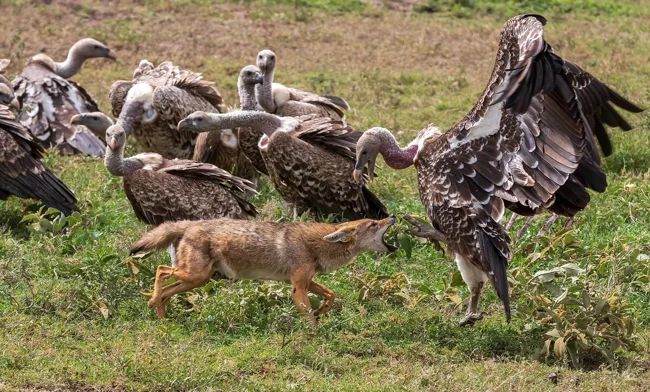 Однако успех такого предприятия не очень явный, в основном потому, что в стае волки охотятся редко. Чаще всего, их добыча — это всякая мелочь: грызуны, ящерицы, рыба. Конечно же, они не откажутся и от тухляка, поэтому звери с энтузиазмом дерутся с мощными грифами за мертвечину.
