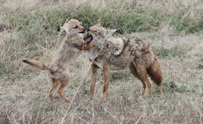 Кстати, о щенках. В конце весны у волчар начинаются дела амурные. Тут в целом всё как у остальных псовых: оба родителя следят за помётом из 3-5 потомков. Первое время семья прячет щенков в норе. Пройдут недели, прежде чем повзрослевшая малышня присоединится к стае, чтобы терроризировать пустыни и путать ученых!