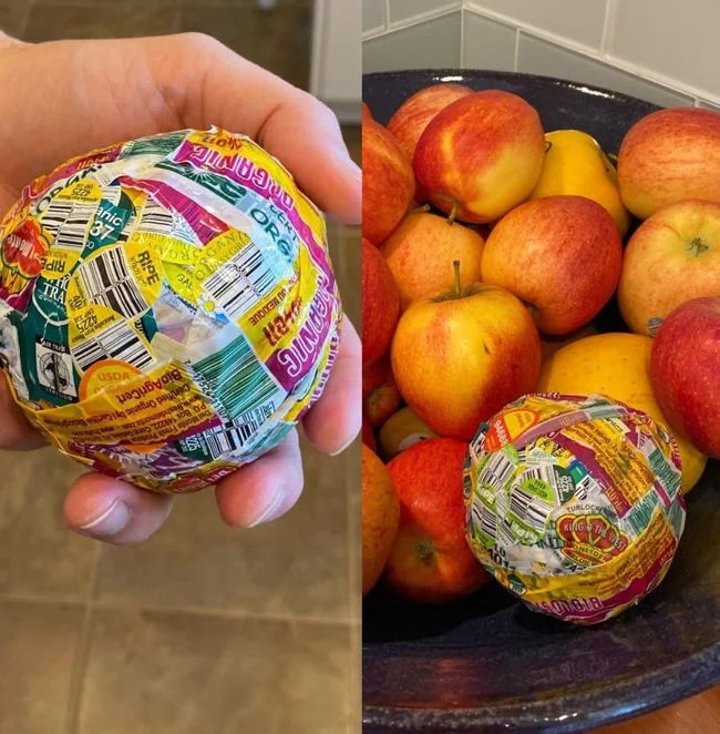 9. «Муж сестры собирал наклейки с фруктов и сделал из них шар»