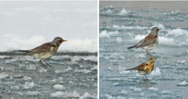 Иртыш, 1 декабря 2020. Оттепель решила наступить, зимние комарики решили вылететь. А дрозды-рябинники решили их съесть.