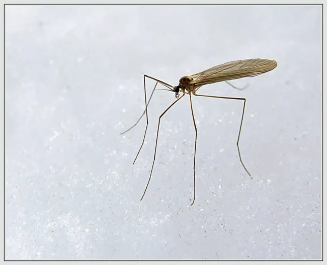 Дальнейшая судьба самцов не волнует ни нас, ни эволюцию. Они выполнили свою роль. А вот для самок начинается самое сложное: им нужно не замёрзнуть насмерть в ближайшие 3-5 дней, пока созревают яйца. Насекомые довольно устойчивы к холодам. Но -5°C для них равносильно смерти. Поэтому они держат свои органы подальше ото льда и снега. Буквально. Их ноги намного длиннее лапок комаров-кровопийц, как раз для того, чтобы поднять туловище как можно выше над сугробами.