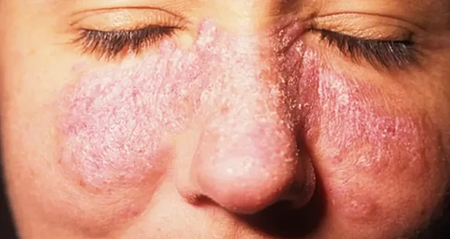 Заболевание поражает преимущественно молодых женщин. Своё название красная волчанка получила из-за сходства кожных проявлений с укусами волка. Сначала человек чувствует недомогание, у него часто повышается температура. Затем присоединяются и другие признаки болезни — высыпания на коже, боли в суставах, увеличение лимфатических узлов, сбои в работе сердца, почек, лёгких, нервной системы. При этом периоды обострения могут чередоваться с ремиссиями.
