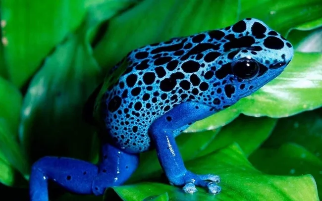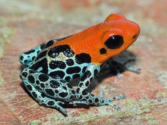 Очень стильный леопардовый окрас пятнистой ядовитой лягушки, обитающей в Перу, оправдан. Так она предупреждает об опасности. Яда этой красотки достаточно для того, чтобы убить не одного, а сразу нескольких человек. Радует, что существо это миролюбивое и никогда не станет нападать первым, используя свои способности лишь при защите.