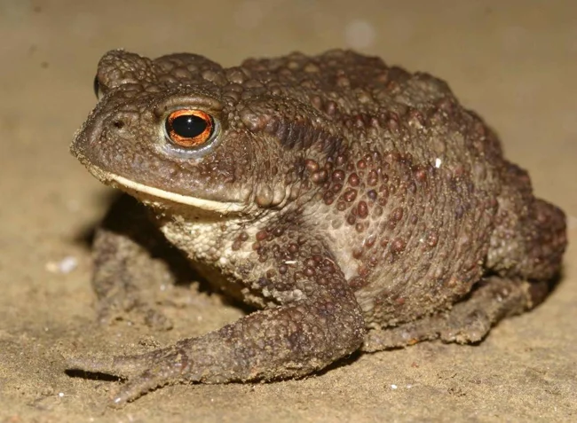 А это создание наоборот старается максимально слиться с местностью. Серая жаба встречается в разных областях. При приближении поступает благородно – может подняться на задние лапы, приняв угрожающую позу. В момент опасности выделяет белый яд из желез, расположенных за глазами. Опасный как для животных, в частности, сельскохозяйственных, так и для человека.