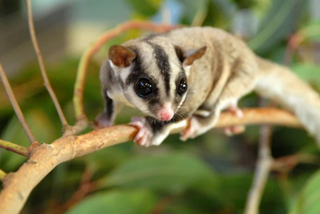 Сахарная сумчатая летяга – обитатель Австралии и Индонезии. Внешне это трогательное создание похоже на белку, только с более вытянутой мордочкой и большими трогательными глазами. Летяги, как понятно из названия, предпочитают сладкий нектар, сок и фрукты. Но и насекомыми тоже не брезгуют. А с дерева на дерево изящно перемещаться им помогают специальные мембраны между лапами.