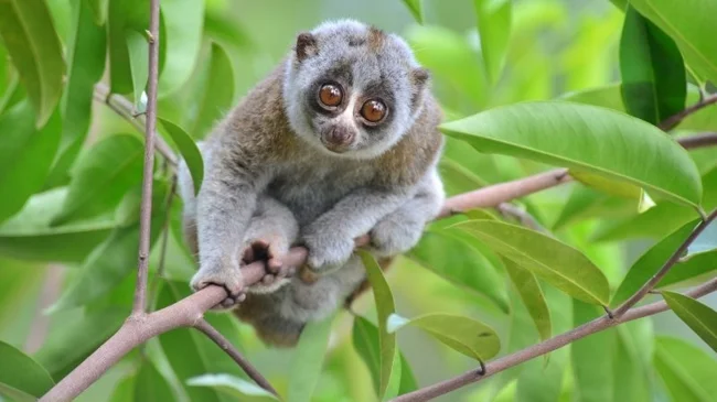 Очередной меховой красавец, обитающий во мраке, это медленный лори. Несмотря на кажущуюся безобидность, медленный лори – типичный представитель Юго-Восточной Азии, хищник. По запаху он отлично находит в темноте не только фрукты, но и птиц, их гнёзда и даже мелких рептилий, которыми с удовольствием лакомится.