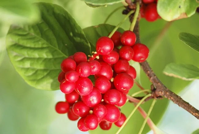 Ягоды лимонника мелкие, красные, внешне напоминают смородину или калину. В свежем виде – десерт на любителя из-за редкого сочетания сразу нескольких привкусов – острого, сладкого, солёного, горького и кислого. Плоды очень полезные и активно применяются в сушёном виде для нормализации сна, пищеварения, давления и устранения хронической усталости. В кулинарии сырьё используют при производстве джемов, морсов и мармелада.