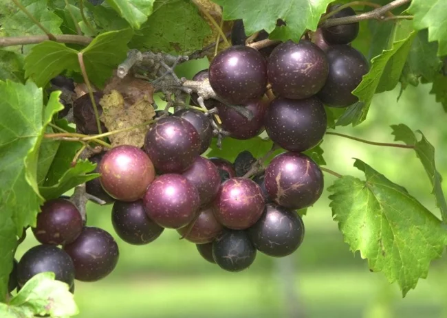 Это разновидность винограда с ярким мускусным привкусом. Цвет кожуры варьируется от лилового до чёрного, а мякоть напоминает сливовую. Мускадин обладает мощным антиоксидантным действием и используется для производства вин.