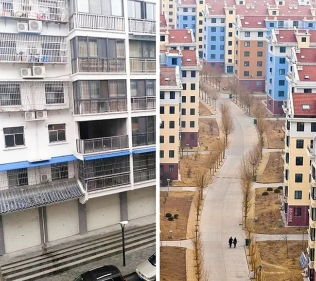 Помимо многоквартирных домов, в Китае много одноэтажных домов, напоминающих бетонные коробки. Внутри не так много вещей, но два обязательных атрибута - это иероглифы с пожеланиями удачи у входа и портрет Мао Цзэдуна в самой большой комнате. Ванные комнаты в этих домах обычно расположены на улице, и в них нет душа.