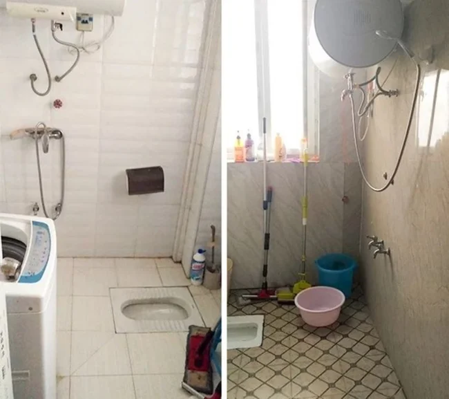 Ванны можно найти только в дорогих отелях, и в домах богатых китайцев в больших городах. В апартаментах есть только один душ, которым китайцы пользуются днем, а не утром, и он расположен прямо над полом. В ванной вся вода уходит в унитаз, в том числе и из стиральной машины.