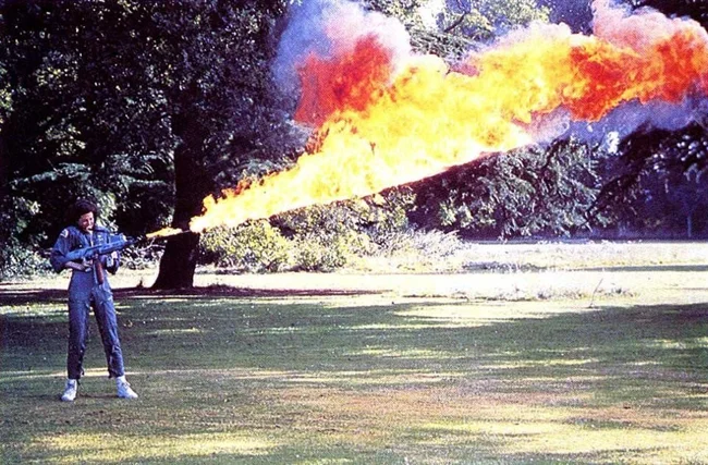 4. Испытание огнемета во время съемок фильма "Чужой"