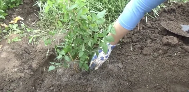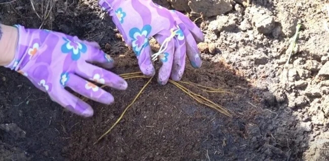 При посадке саженца с открытой корневой системой, наоборот, сделайте земляной холмик по центру ямы. Разместите корни клематиса по сторонам возвышенности. Проследите, чтобы корневая шейка находилась на 8 см ниже поверхности почвы на клумбе.