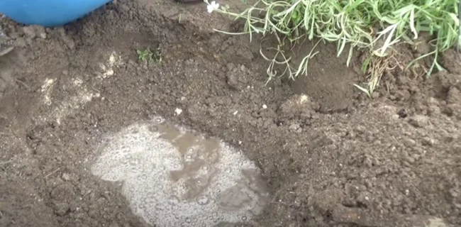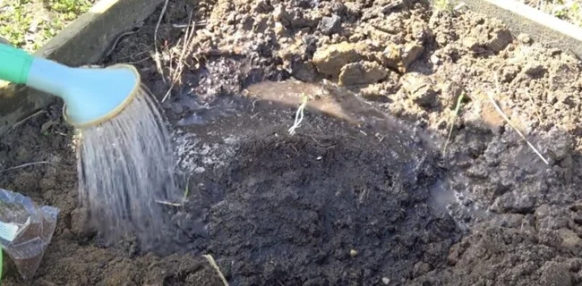 Увлажните почву вокруг растения водой, используя лейку с насадкой‑рассеивателем, чтобы не размыть грунт.