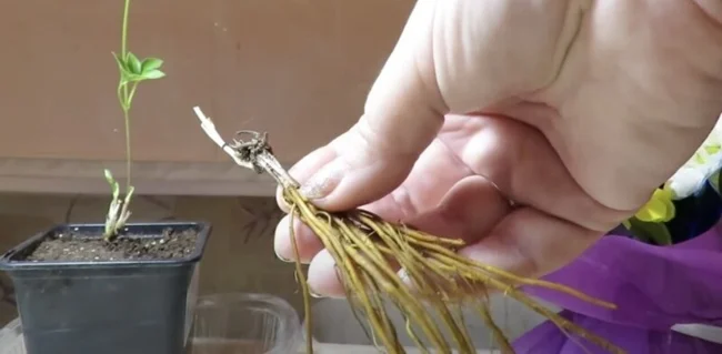 Выбирая растение с открытой корневой системой, внимательно осмотрите его корни. Они должны быть хорошо разветвлёнными, светлыми, живыми, без повреждений, гнили и плесени. У качественного саженца есть как минимум один здоровый росток.