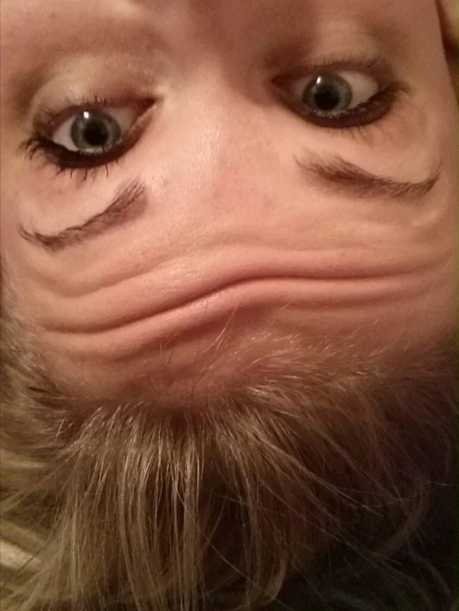 7. Перевернутое лицо женщины похоже на слегка разочарованного усатого карлика