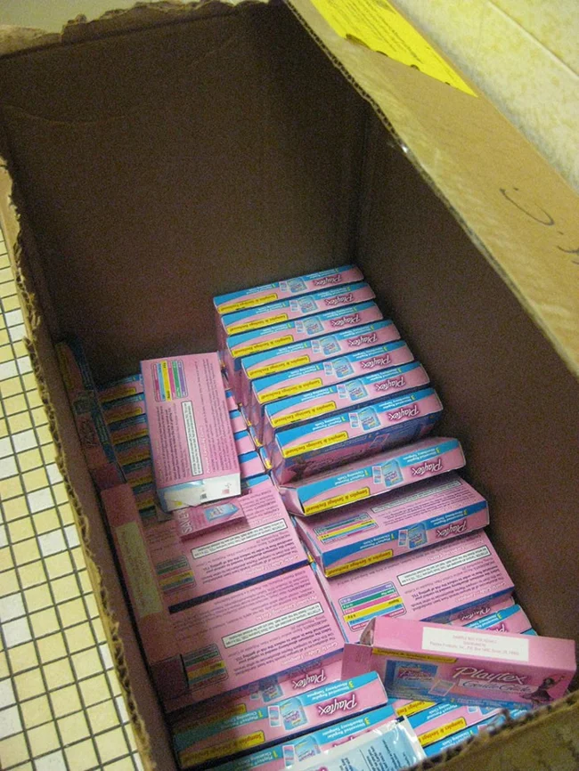 «Женский взгляд: после тюрьмы появилась привычка запасаться средствами женской гигиены в большом количестве. Нам выдавали очень мало прокладок и тампонов. Женщинам в камерах предварительного заключения вообще ничего не выдавали. На полу и бетонных скамьях была засохшая и свежая менструальная кровь, а посреди комнаты находился сток канализации. Чтобы просто пролить комнату из шланга».