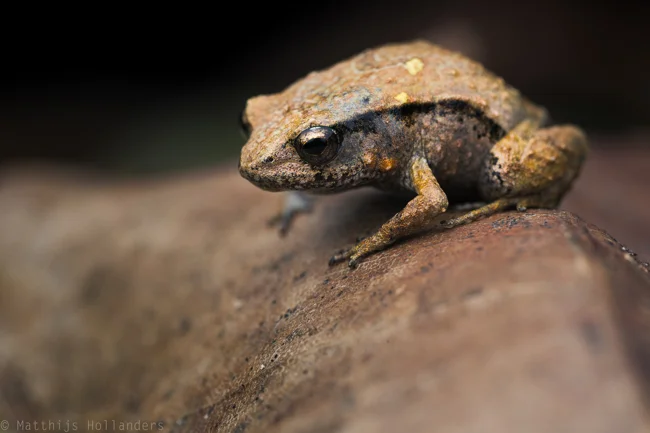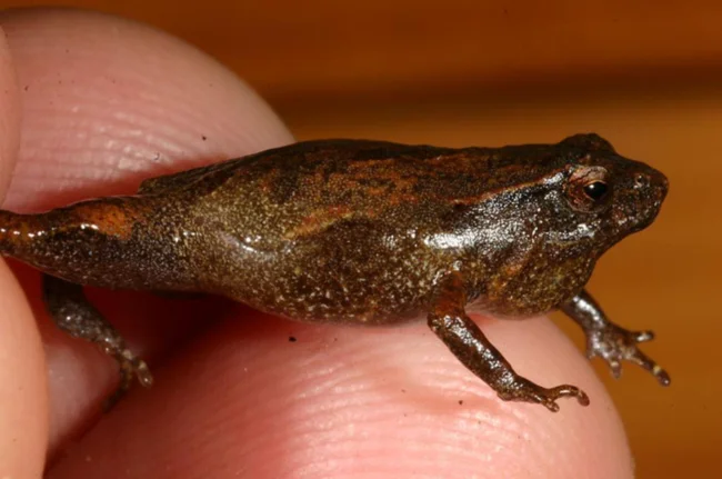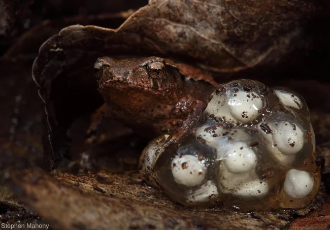 Дни амфибий наполнены лучшей деятельностью из возможных — лежанием. В светлое время суток они прячутся под корнями деревьев, гниющей древесиной и камнями. Благо, сделать это несложно, если ты всего 2 сантиметра в длину. Сумчатые жабки активничают ночью: охотятся на беспозвоночных и громко кричат, призывая самок.
