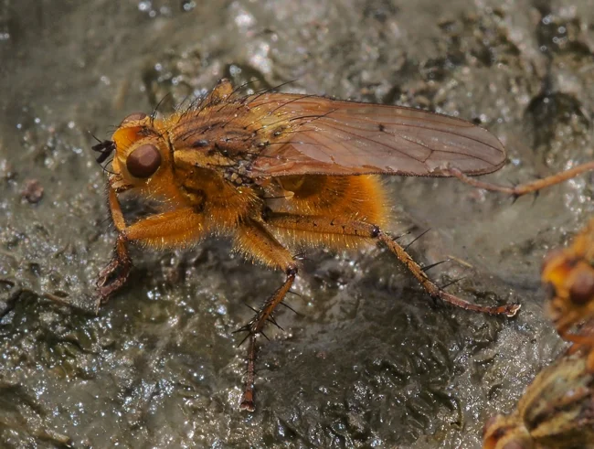 Это одно из тех названий, которые даются впопыхах, да так и привязываются. А бедолага-муха должна всю жизнь доказывать, что не жрет, ну не жрет она такую гадость! Хотя навоз ей нужен. Это же отличная колыбелька. Симпатичные рыжие мухи откладывают в навоз яйца.
