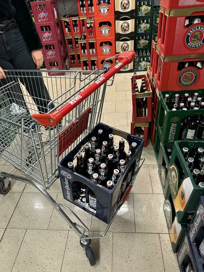 30. В магазинных тележках в Германии есть специальный отсек для пива ![]()