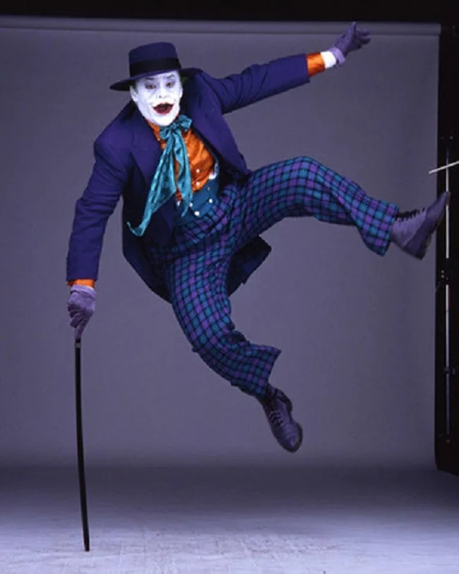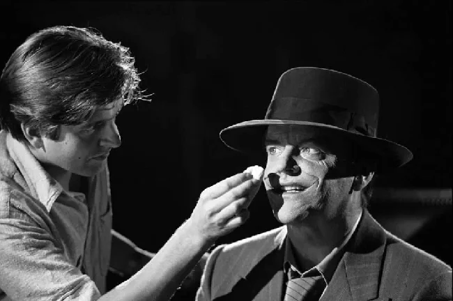 В фильме Джокеру приходится маскировать свое белое лицо, раскрашивая его в телесный цвет. В сценарии было оговорено, что Джокер должен снимать грим телесного цвета, чтобы под ним была видна белая кожа, а значит, команде гримеров нужно было найти способ снять один слой грима и оставить нетронутым другой. В результат они покрасили Джека Николсона белой краской PAX, а затем нанесли на нее тонкий слой пищевого силиконового масла, к которому ничего не прилипает. После этого взяли жирную краску телесного цвета и тщательно закрасили ее так, что она буквально легла поверх масла. Потом нанесли аэрографию и затемнили краску, чтобы она выглядела естественно. Смочив носовой платок в изопропиловом спирте, Николсон мог протереть лицо, и это убирало жирную краску, но оставляло нетронутой белую.