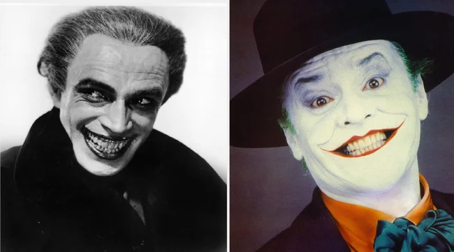 Вдохновение для того, каким должно быть лицо Джокера авторы черпали в немом фильме "Человек, который смеётся" 1928 года (по роману Виктора Гюго). Главный герой романа был ещё мальчиком умышленно изуродован торговцами людьми, которые превращали детей в уродов на потеху публики.