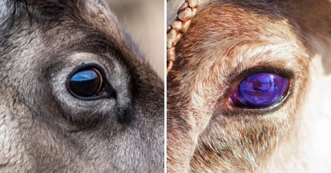 Такая адаптивная способность позволяет животным лучше видеть при слабом освещении. Любопытно, но у некоторых оленей глаза зимой могут становиться не только синими, но и зелёными.