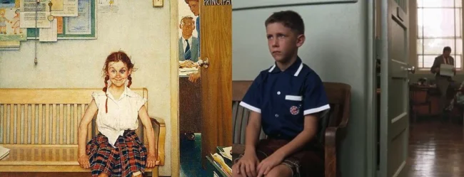 Создавая родной город Форреста и Дженни, Земекис вдохновлялся картинами Нормана Роквелла. Сцена, где Форрест сидит в коридоре школы, а его мать разговаривает с директором, является точной копией картины Роквелла «Девочка с синяком под глазом».