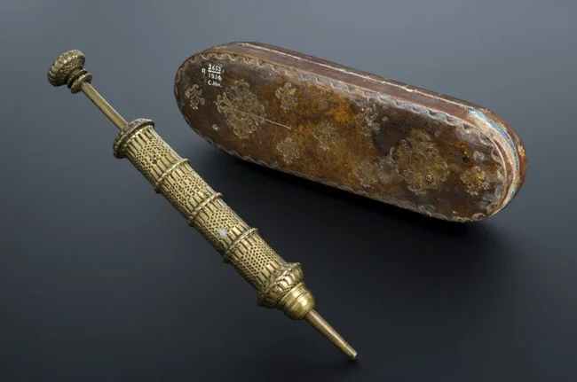 Латунный шприц с футляром, 1601-1630 годы
