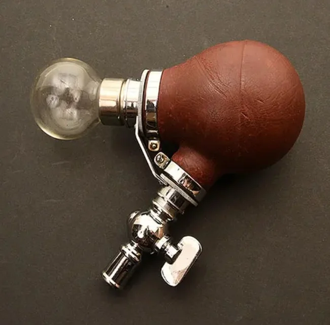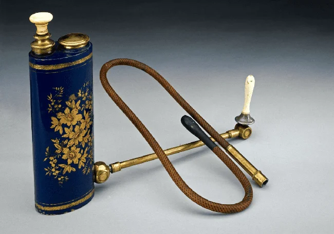 Металлическая поршневая клизма с ёмкостью и сменными наконечниками, 19 век