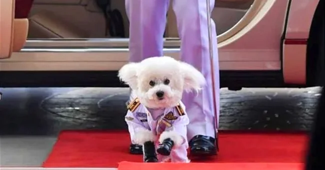 Пудель в звании маршала авиации Таиланда. Это любимый пёс Рамы X, короля Таиланда, поэтому в этом случае не обошлось без кумовства.