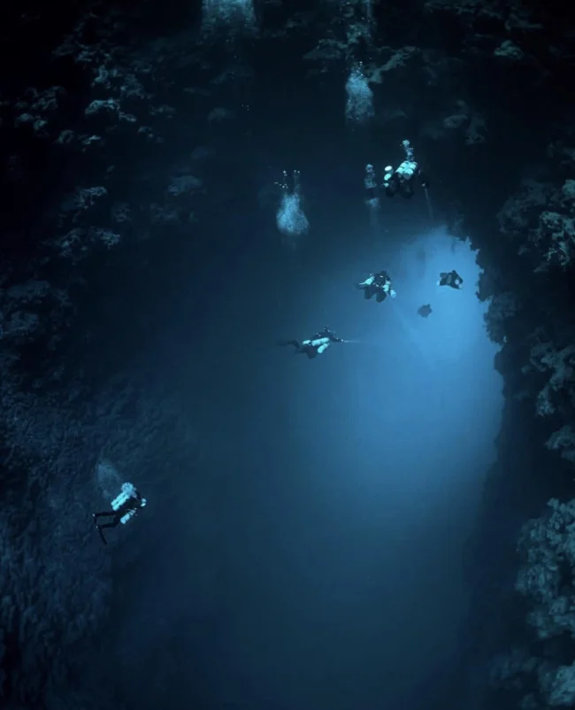 Это карстовая воронка глубиной 130 м. Проход, соединяющий пещеру с морем, называют Аркой. Находится Голубая дыра неподалёку от египетского курортного города Дахаба. При погружении в Голубую дыру погибли не менее 200 дайверов.