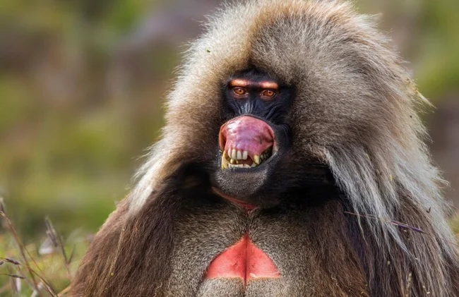 Гелады – это редкий вид приматов из семейства мартышковых. Обитают на горных плато Эфиопии. Изюминкой обезьян является лишённый шерсти участок кожи на груди ярко-красного цвета. Если не особенно придираться, то можно рассмотреть в нём сердце.