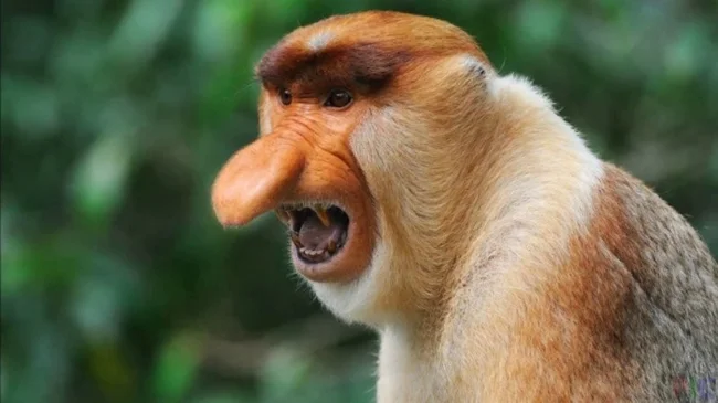 Название этих необычных созданий, обитающих в джунглях Борнео, полностью оправдано. Носач обладает выдающейся центральной частью морды, что в совокупности с вытянутой физиономией и полуприкрытыми глазами придаёт ему грустный вид.