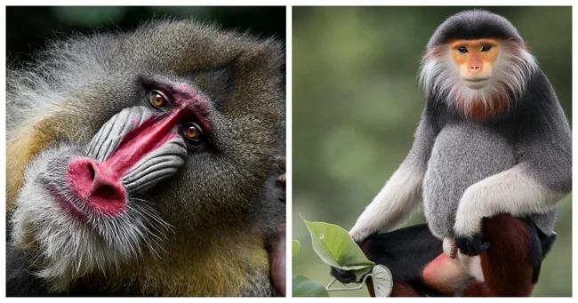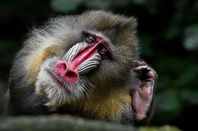 Мандрил – одна из самых крупных и ярких обезьян. Что примечательно, в моменты сильных эмоциональных потрясений интенсивность цвета повышается.