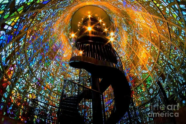 13. Башня из витражного стекла с винтовой лестницей по центру в японском музее Хаконе