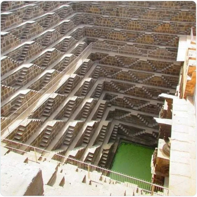 14. Чанд-Баори — ступенчатый колодец, расположенный в индийской деревне Абанери. Он был построен в 800 году нашей эры с целью облегчить доступ людям к воде. Это один из самых крупных и глубоких ступенчатых колодцев Индии с 3500 узкими ступеньками и 1