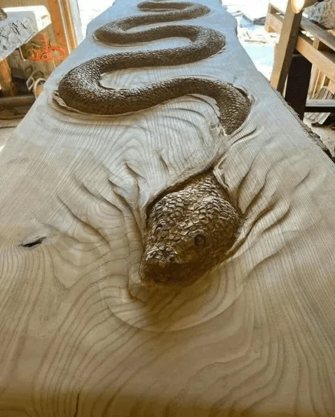 Деревянный стол со змеёй