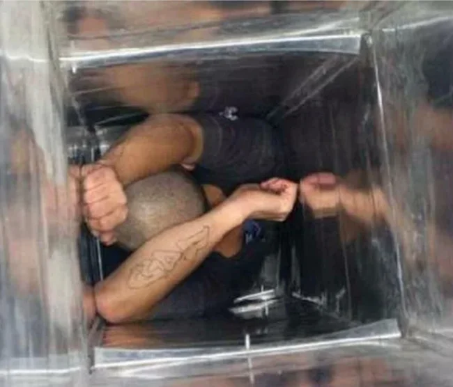 Находящиеся в заключении двое людей решили бежать из своей камеры, используя трубу от душа для создания отверстия в стене. Однако размер получившегося отверстия оказался недостаточным, и один из заключенных не смог пролезть сквозь него, застряв в стене. Охранники тюрьмы нашли его там взаперти.