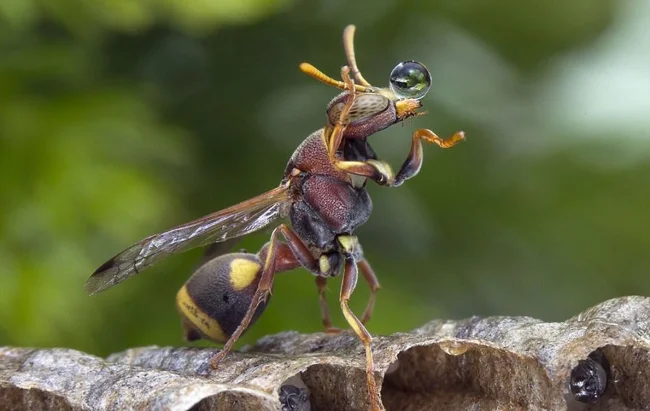 Прогуляйтесь по лесу после проливного ливня, поищите осиные гнёзда и, если у вас хватит смелости, подойдите поближе. С некоторой долей вероятности вы увидите насекомых, которые пускают пузыри. Подойдите ещё ближе и вы увидите, что это не пузыри, а капельки воды. Потрите ужаленный нос и отойдите.