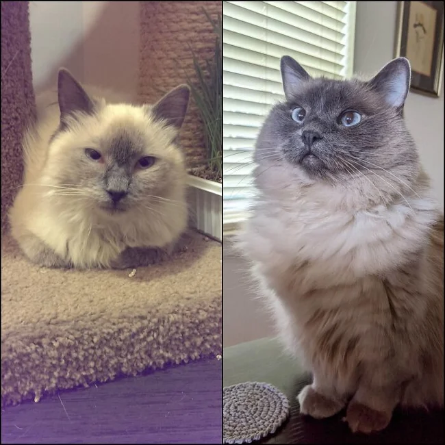 27. "Мой кот Август и его возлюбленная. Спасли их в разное время, но теперь они живут в одном доме"